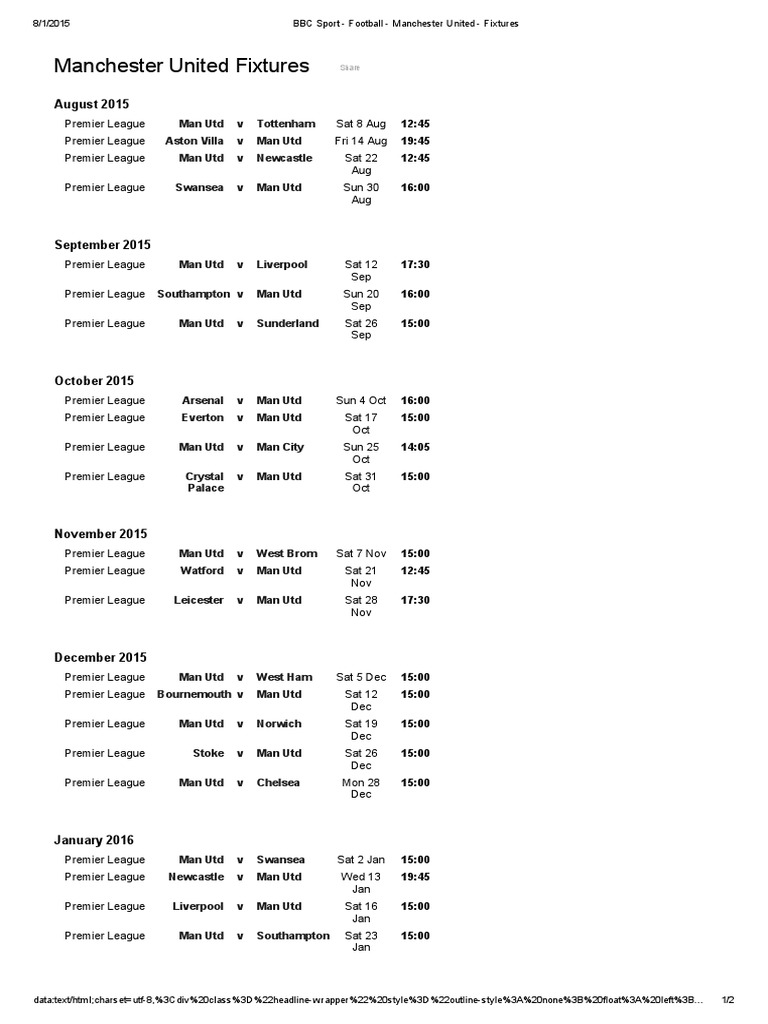 Diese seite enthält eine übersicht aller saisonspiele für den verein man utd in chronologischer reihenfolge. Sky sports football has all the latest news, transfers, fixtures, live scores, results, videos, photos, and stats on manchester united football club. Manchester united brought to you by manchester united fixtures & results. Manchester united fixtures and results. Premier league 17:00 sat 15 may 17:00 england premier.